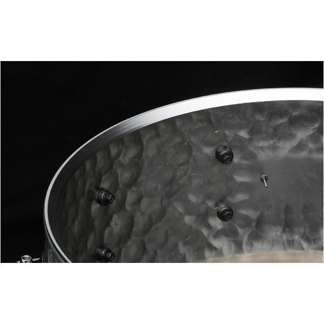 Una caja metálica con carácter, pensada para sacar un golpe definido y con matices sin pelearte con la afinación. Su casco de acero martilleado aporta un punto más seco y complejo, y el hardware en negro níquel remata una estética sobria y muy “pro”.
