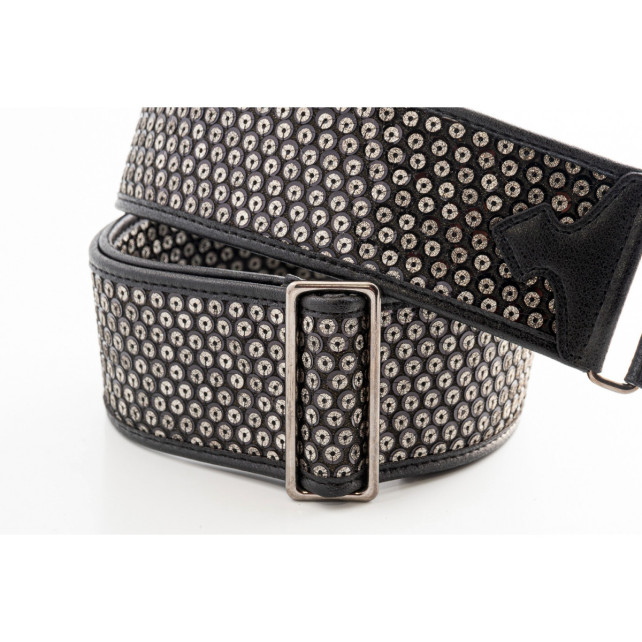 Correa de Guitarra DISCO, una correa brillante hecha para brillar en el escenario, el nombre Disco es evidentemente por los discos brillantes que tiene la correa, recordando las famosas bolas de espejos de los 70.