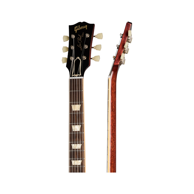 De caoba con diapasón de Palosanto Indio le dan la claridad y definición. Su perfil 50s Rounded Médium tipo C se siente cómodo en su grosor medio y ayudado por un diapasón plano de 12". La unión con el cuerpo es mediante cola Long Tenon Hide Glue Fit, con cejilla de Nylon e incrustaciones en el diapasón tipo Trapecio en nitrato de celulosa envejecido