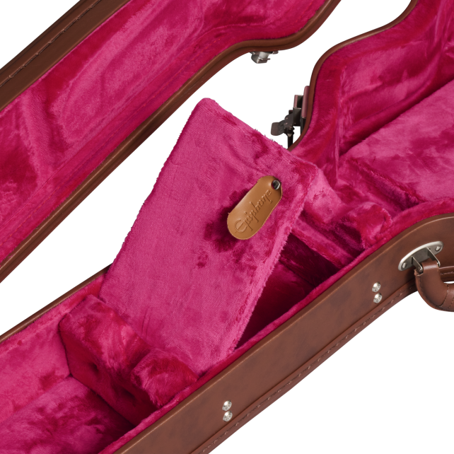 Incluye estuche rígido en color marrón con interior en rosa y con logo Epiphone by Gibson Custom