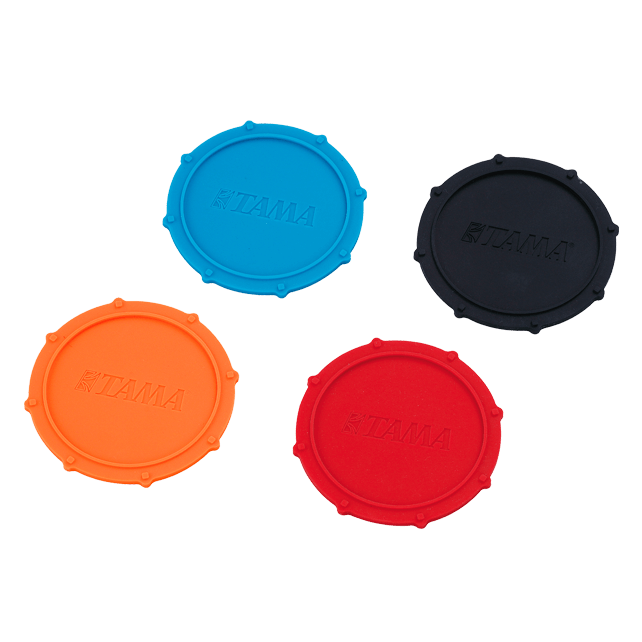 Original juego de posavasos de la marca Tama con forma de caja de batería